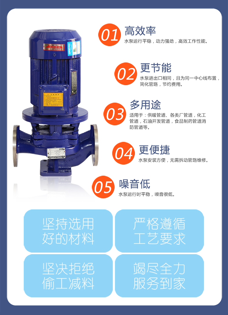IHG型不銹鋼立式管道離心泵、單級(jí)不銹鋼離心泵、臥式離心泵、立式離心泵、熱水泵、循環(huán)泵等是我廠技術(shù)研究所聯(lián)合國(guó)內(nèi)水泵專家選用國(guó)內(nèi)優(yōu)秀水力模型,在一般立式管道泵的基礎(chǔ)上進(jìn)行巧妙組合設(shè)計(jì)而成,同時(shí)根據(jù)使用溫度、介質(zhì)等不同在ISG型系列管道泵的基礎(chǔ)上派生出適用熱水管道泵、高溫耐腐蝕化工管道泵、管道油泵。該系列產(chǎn)品具有高效節(jié)能、噪音低、性能可靠等優(yōu)點(diǎn)。符合最新國(guó)家機(jī)械部JB/T53058-93的標(biāo)準(zhǔn)要求,按國(guó)際ISO2858標(biāo)準(zhǔn)設(shè)計(jì)制造。