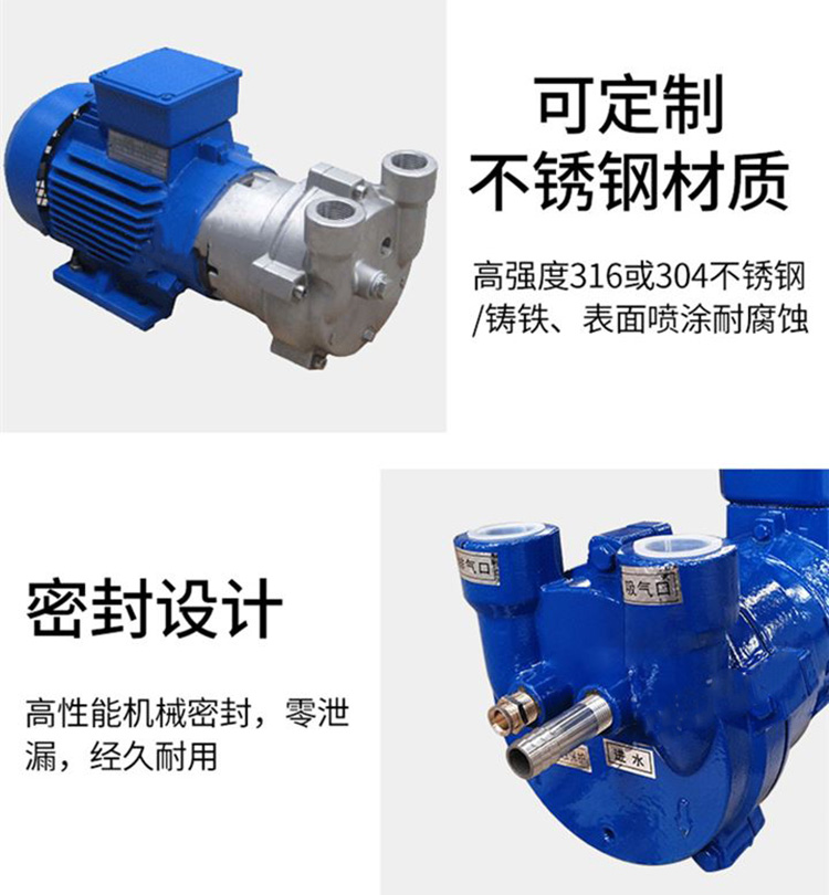 2BV系列水環(huán)真空泵為整體結(jié)構(gòu)-機(jī)泵同軸的單級(jí)泵。軸封采用機(jī)械密封,具有結(jié)構(gòu)簡(jiǎn)單,安裝簡(jiǎn)捷、無(wú)油、安全可靠特點(diǎn)。