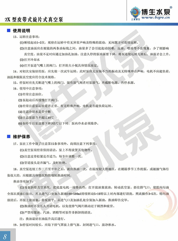 3、真空泵一般在不低于5℃的室溫及不高于90%的相對溫度的環(huán)境內使用。