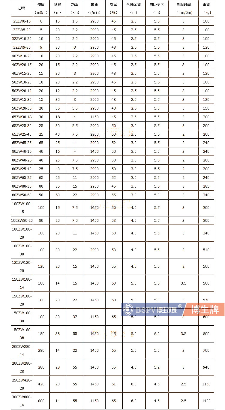 博生牌ZW系列自吸式無(wú)堵塞排污泵